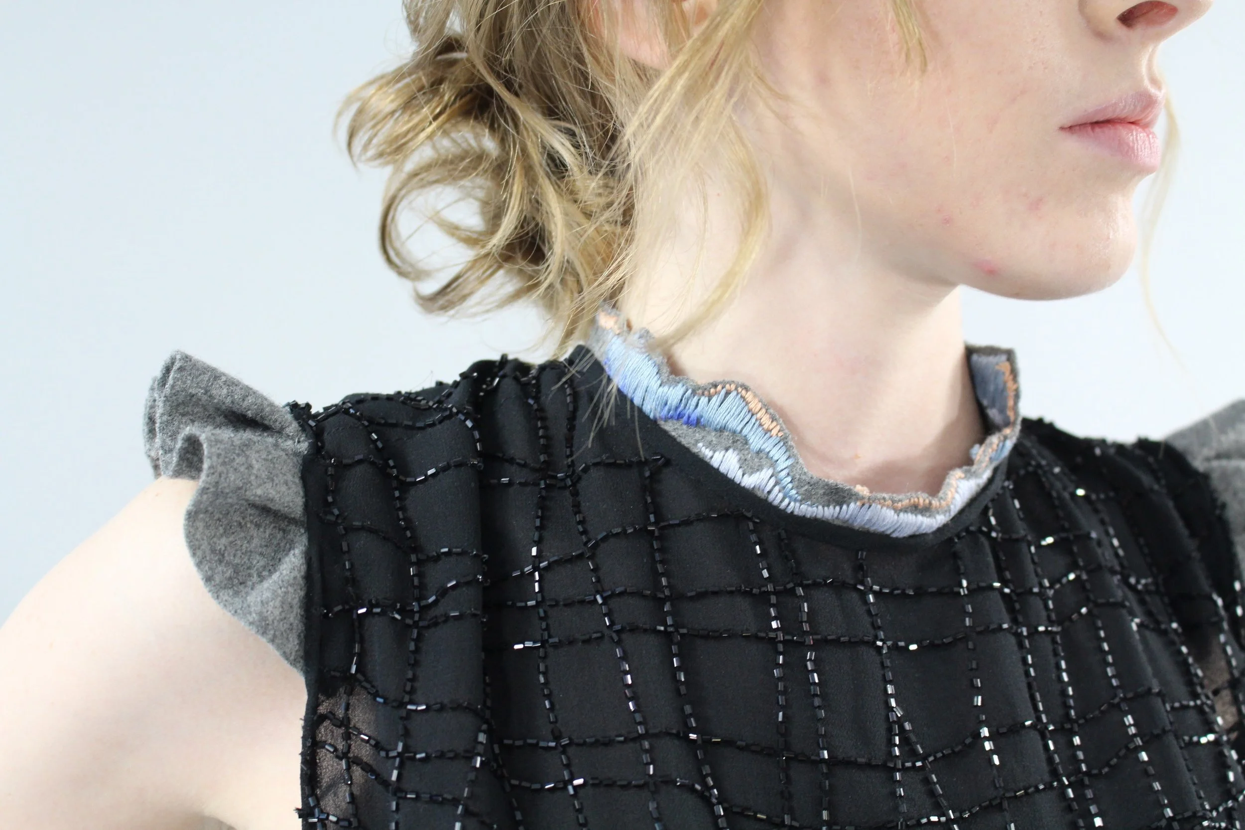 Hand and machine embroidery work from the FW16 Flor and Thace collaborative collection